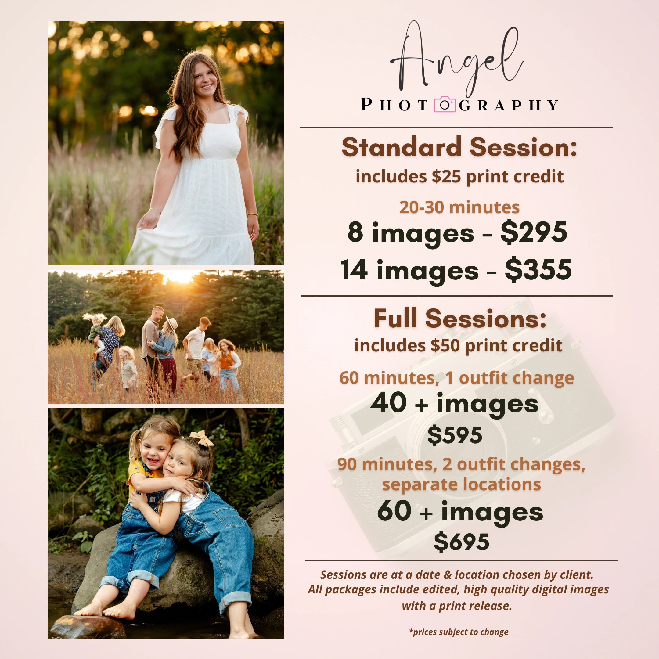 Can be in home, on location, or follow social media for updates on mini sessions.